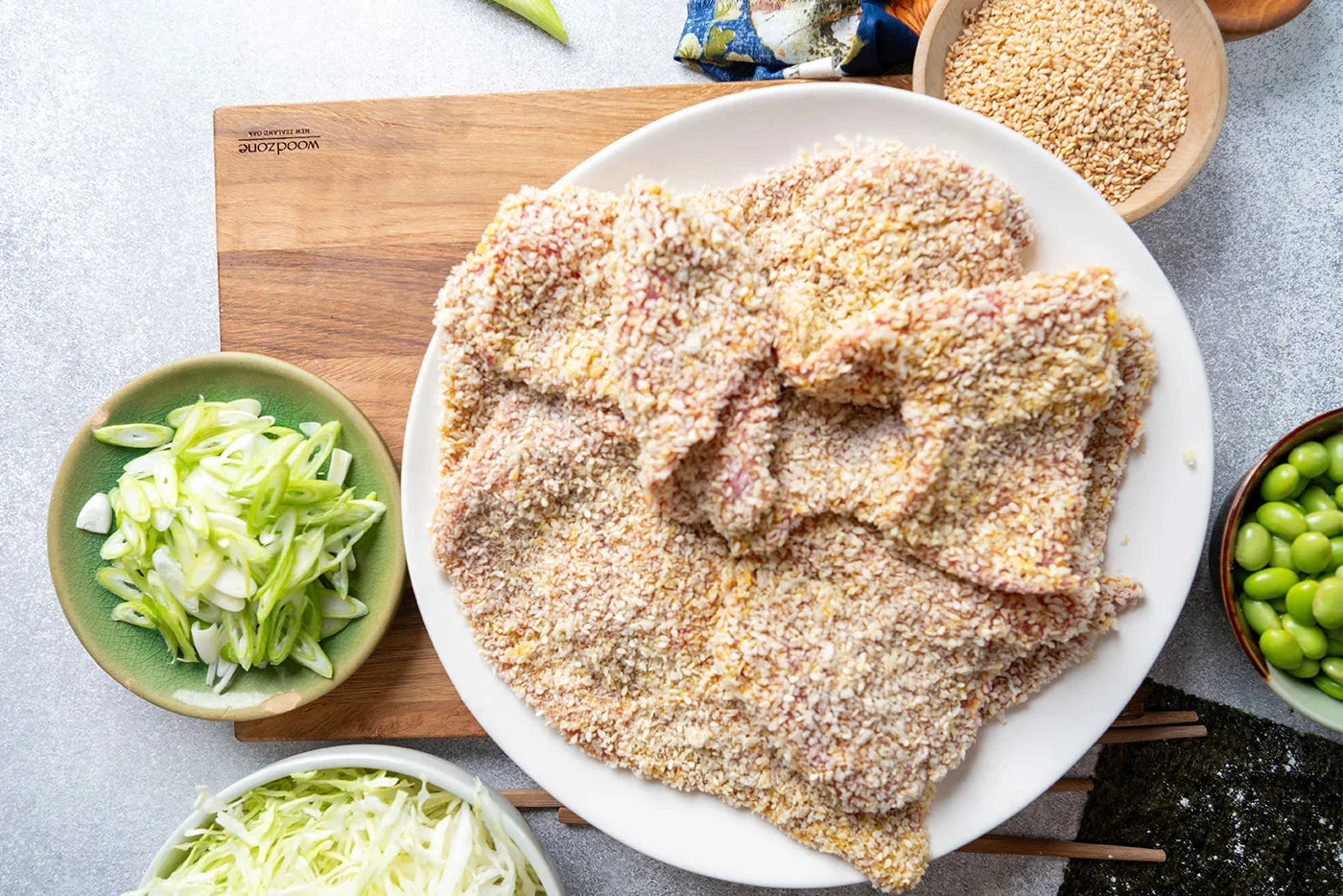 - Japanese Edamame Slaw with Sesame Schnitzel